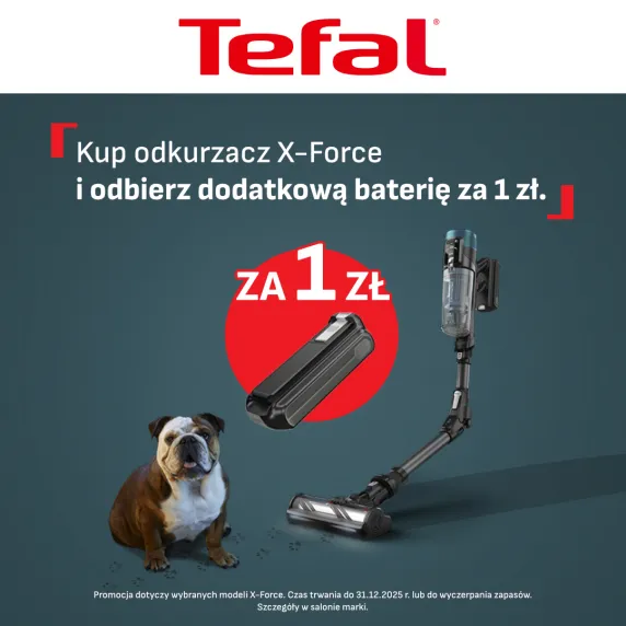 Kup odkurzacz X-Force i odbierz dodatkową baterię za 1 zł. Promocja dotyczy wybranych modeli X-Force.