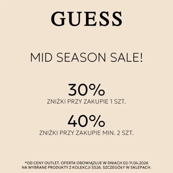 *Od ceny Outlet. Oferta obowiązuje w dniach 02-11.04.2026 na wybrane produkty z kolekcji SS26. Szczegóły w sklepach.